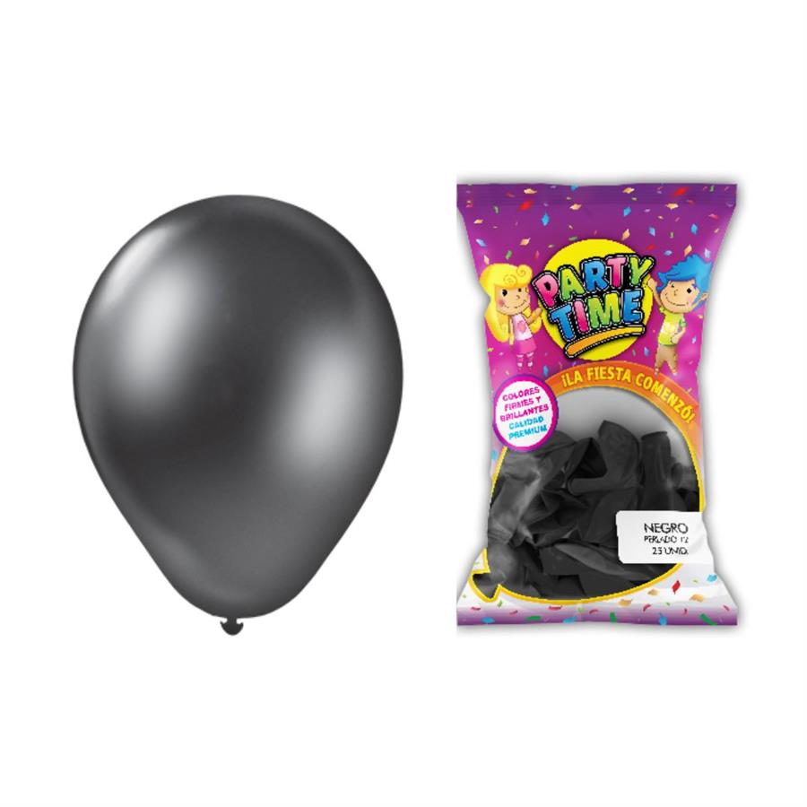 GLOBO 12P PARTY TIME PERLADO NEGRO X25