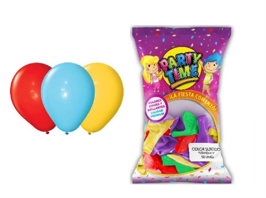 GLOBO 9P PARTY TIME STD SURTIDO X50 Tamaño de 9 pulgadas Marca: Partytime Cantidad: 50